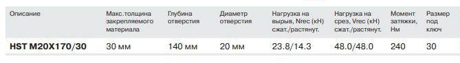 Анкер-шпилька Hilti HST M20x170/30 для ответственных креплений Распорный анкер для использования в растянутой и сжатой зоне бетона с уникальным дизайном распорной части.