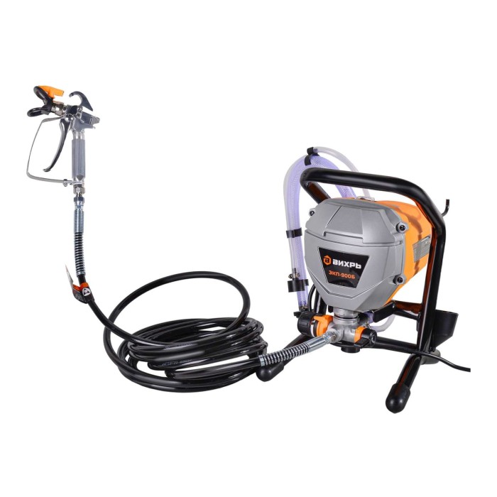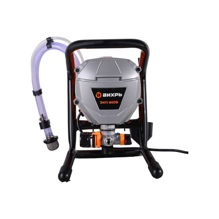 Электрический безвоздушный окрасочный аппарат ЭКП-900Б Вихрь — это надежное и производительное оборудование, предназначенное для профессионального и бытового применения. Он подходит для обработки внутренних и внешних поверхностей, включая стены, потолки, фасады, заборы и другие конструкции.