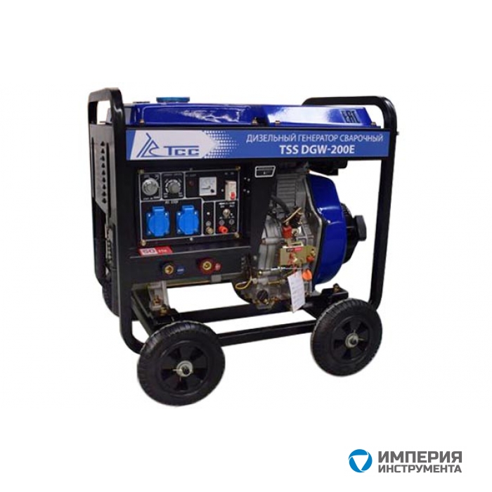 Сварочный дизельный генератор ТСС DGW-200E — предназначен для проведения Ручной Дуговой Сварки в условиях отсутствия сети электроснабжения. Широко используется на строительных, монтажных и ремонтных площадках. Для проведения сварочных работ рекоммендуется использовать именно Сварочный Генератор, т.к. это намного практичнее, надежнее и экономичнее чем использовать пару устройств: генератор электроэнергии и сварочный аппарат. Кроме основной Сварочной Функции данный сварочный генератор может использоваться и как Автономный Источник Электроснабжения для подключения потребителей энергии.