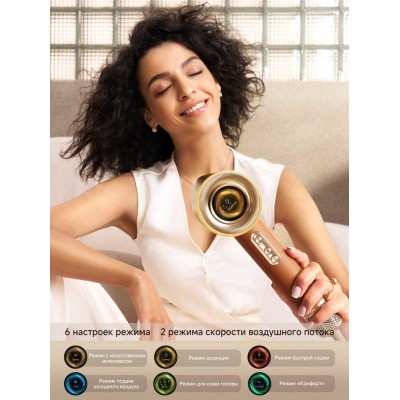 Для сушки волос можно использовать различные режимы, выбирая их с учетом своих потребностей. Интуитивно понятная цветовая индикация информирует о выбранном режиме сушки. Адаптивный уход способствует бережной защите кожи головы, а также быстрой и эффективной укладке волос