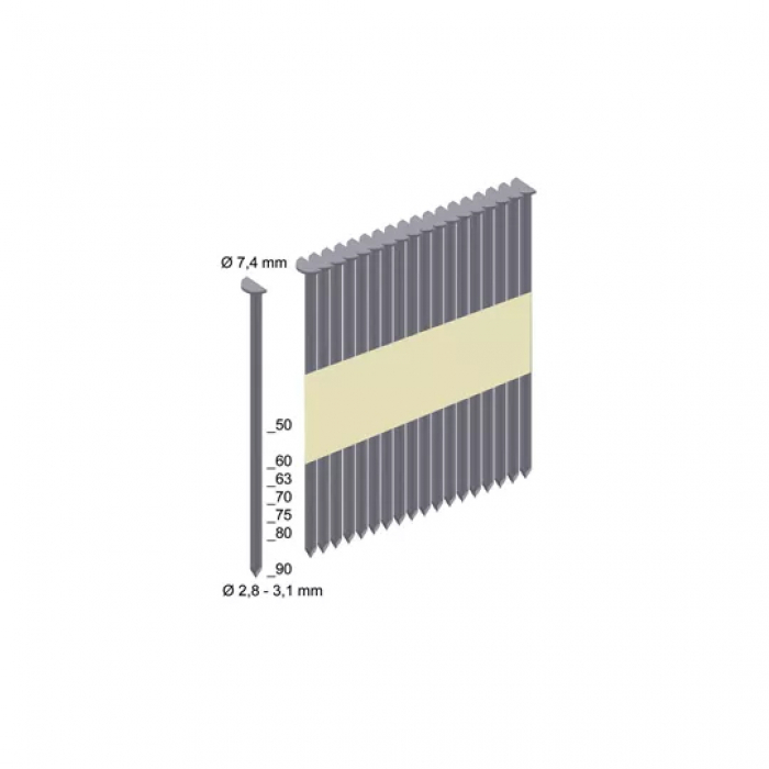 | Гвозди с кольцевой накаткой и полукруглой головой 7,4x2,8/50 мм - 4000 шт. |