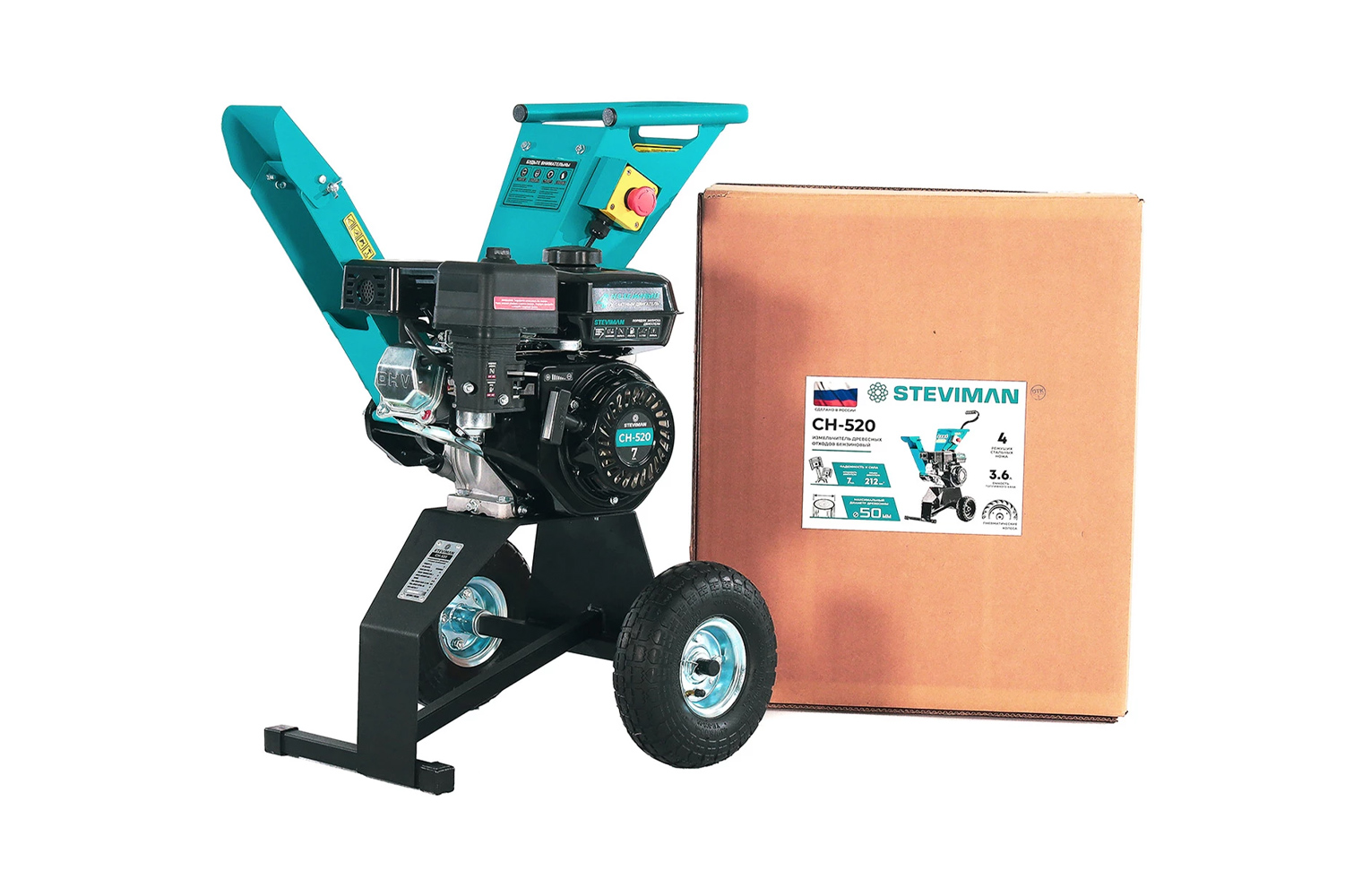 Измельчитель STEVIMAN CH-520 оснащен бензиновым двигателем EST модели 212CC объемом 212 см³ мощностью 7 л.с. Такая производительность обеспечивает эффективное измельчение веток диаметром до 50 мм, позволяя быстро перерабатывать садовый мусор и древесные отходы. Топливный бак объемом 3,6 литра позволяет работать продолжительное время без остановок на дозаправку. Ручной запуск двигателя гарантирует надежность конструкции. Объем масла в двигателе составляет 0,6 литра, что упрощает техническое обслуживание и контроль за состоянием агрегата.