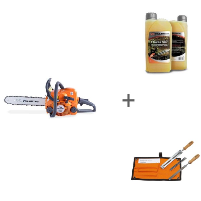 Комплект: Бензопила VILLARTEC SB 018 Legend, шина 35 см.(14") + Масло адгезионное всесезонное + Заточной набор d4,0 мм
