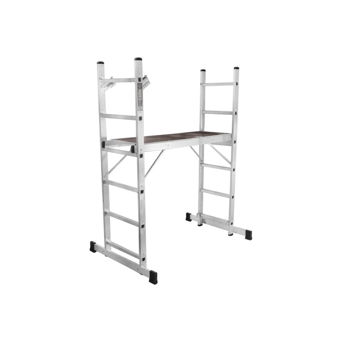 Алюминиевая лестница-помост – это легкий и удобный инструмент, который помогает выполнить работы на высоте безопасно и эффективно.
