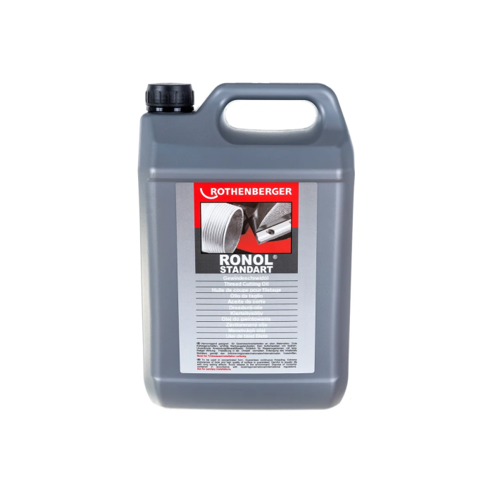 Масло минеральное для резьбы РОНОЛ 5 л Rothenberger 65011 используется для нарезания резьбы на трубах из всех материалов, в том числе из нержавеющей стали высокого качества. Эмульгаторы облегчают вымывание из трубопровода, не содержат вредных для здоровья полихлорированных бифенилов (ПХБ).