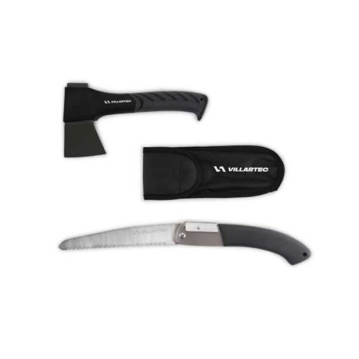 <p>Туристический набор Vilartec HUNTING состоит из минимально необходимых для похода вещей: топора и пилки. Компактные размеры в 23 и 19 см позволяют легко уместить их в рюкзаке. Заводская заточка поможет быстро нарубить и напилить необходимых для разведения костра материалов. </p>