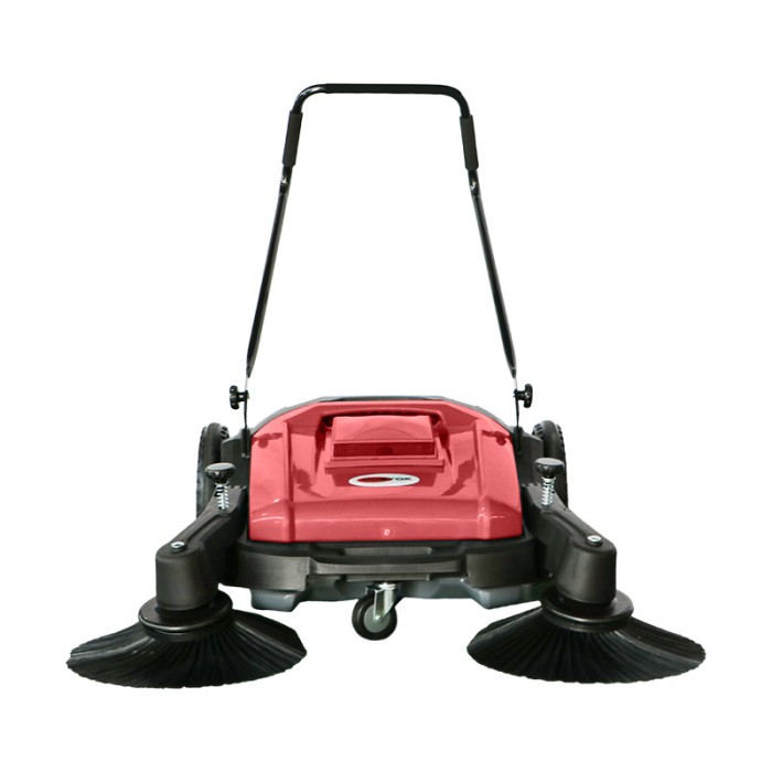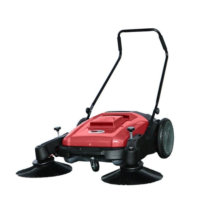 Подметальная машина Vostok SW980 с механическим приводом щеток от вращения колес для уборки мусора внутри помещений и снаружи.