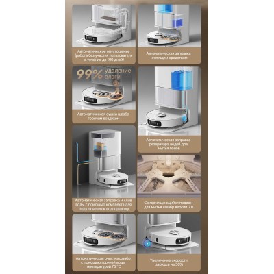 Этот робот-пылесос эффективно и легко собирает различные виды мусора - от комков пыли и шерсти домашних животных до крупного наполнителя для кошачьего туалета, не нарушая ваш покой