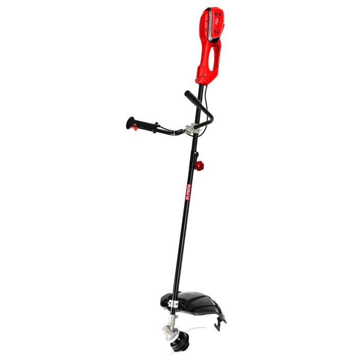Электрический триммер ELITECH ТЭ 1240ВУ представляет собой модель с прямой разборной штангой и велосипедной рукояткой, оснащенную электродвигателем мощностью 1200 Вт. Ширина захвата корда (лески) составляет 400 мм, ножа — 230 мм, а диска — 255 мм.