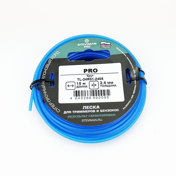 Триммерная леска STEVIMAN 2.4 PRO 15м для бензокос, изготовленная из 100-процентного полиамида, голубого цвета, толщиной 2,4 мм и длиной 15 м.