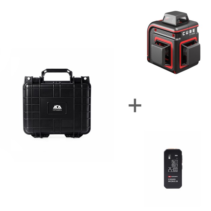 Высокопрочный противоударный герметичный кейс ADA HARD CASE 4500 + Уровень лазерный CUBE 3-360 BASIC EDITION + Лазерная рулетка ADA COSMO MICRO 25 в подарок!